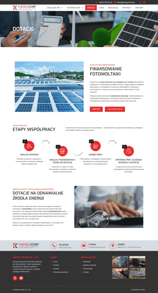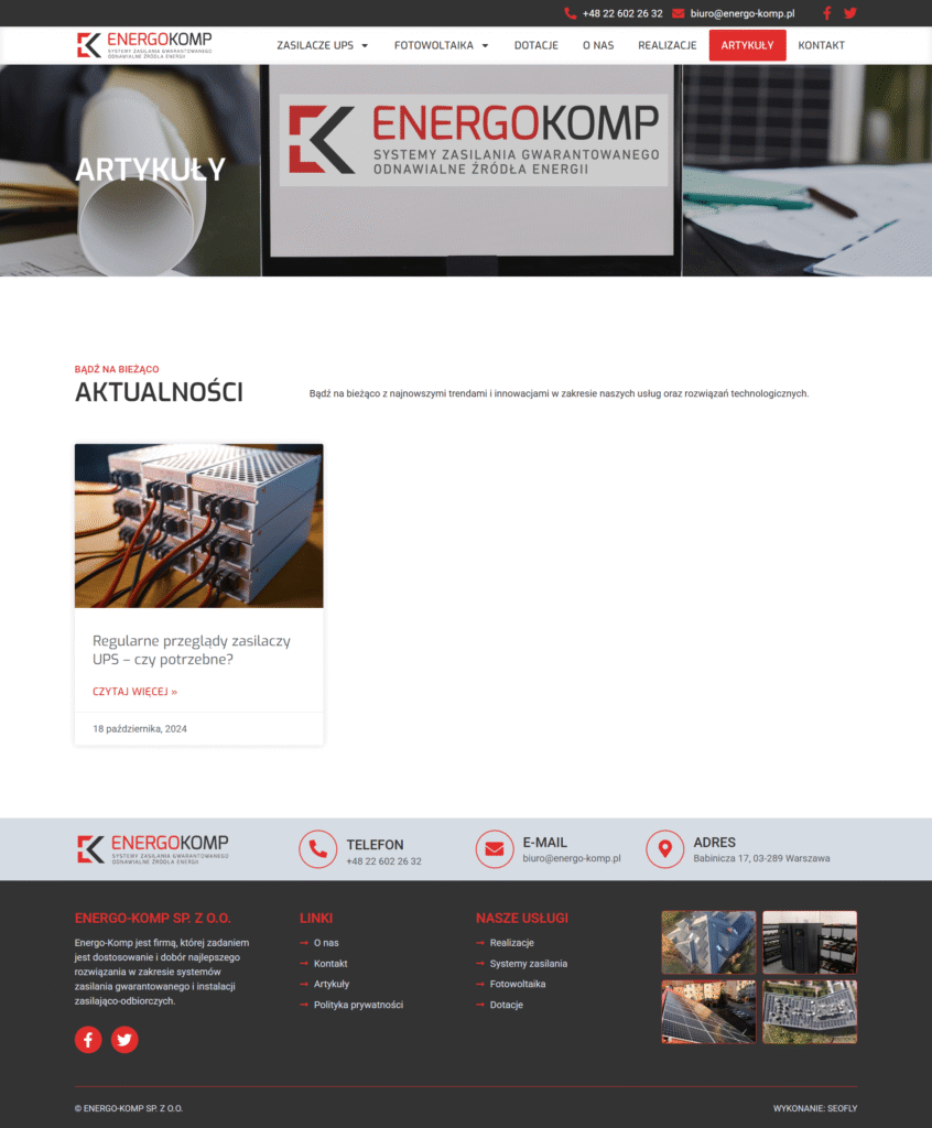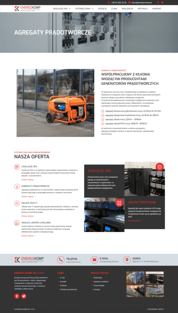Dla firmy specjalizującej się w systemach zasilania awaryjnego, fotowoltaice oraz serwisie zasilaczy UPS, zaprojektowaliśmy responsywną stronę internetową opartą na WordPressie.